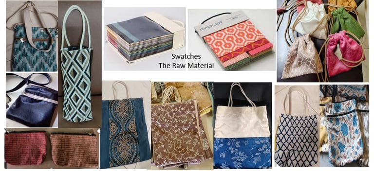 The first step was to network with showrooms and encourage them to donate discarded swatch books instead of throwing them away. Volunteers organized pickups using small trucks and stored the material in homes and community spaces. But dismantling these catalogues was no easy task. The fabric was bolted into thick cardboard with iron nails, requiring strong hands to extract. What emerged was a mix of reusable fabric and recyclable by-products—plastic sheets, PP sheets, nails, and cardboard—all carefully segregated and sent for recycling.